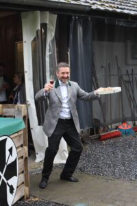 Während des ganzen Schießen wurde sich natürlich auch um das leibliche Wohl gekümmert. So gab es zunächst für die Damen einen kleinen Sektempfang mit kleinen Kuchenhäppchen oder man hat sich ab dem Nachmittag am Grillbuffet satt gegessen, um bis in die späten Abendstunden unsere neuen Majestäten zu feiern (und neu in diesem Jahr konnte dies unter unsere illuminierte Metallkrone neben des Schießstandes geschehen) Hier nochmal ein großer Dank an unser Team Metallkrone, die sich in den letzten Wochen um das Projekt gekümmert haben. Ich denke wir können nun sagen, wir haben ein neues High-Light am Hof.